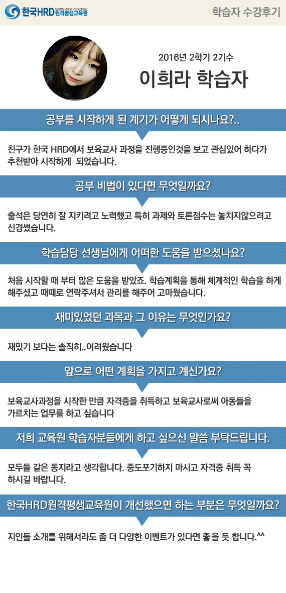 [이희라님] 친구가 한국 HRD에서 보육교사 과정을 진행중인것을 보고 관심있어...